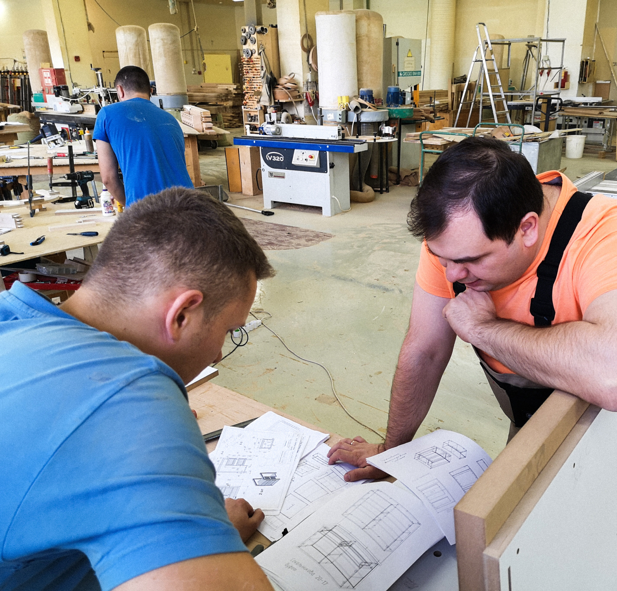 Здесь предусмотрено все для идеального производственного процесса: выверенный до мелочей алгоритм прохождения изделия, климатические установки, площадки для полной черновой сборки, малярные камеры с активным водным полом, позволяющие создавать наисложнейшие финишные отделки в максимальном качестве, шоу-рум с выставочными образцами, а также комфортные условия труда для всех сотрудников производства.